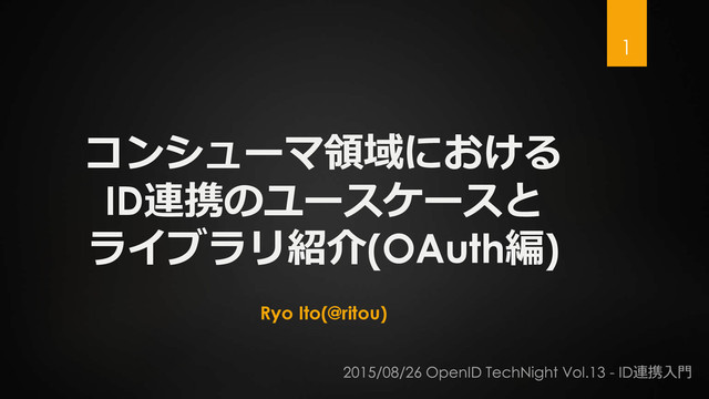 コンシューマ領域における ID連携のユースケースと ライブラリ紹介(OAuth編) Ryo Ito(@ritou) 1