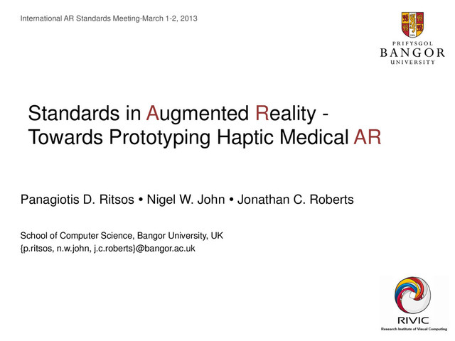 Augmented Reality technology has been used in medical visualization applications in various different ways. Haptics, on the other hand, are a popular method of interacting in Augmented and Virtual Reality environments. We present how reliance on standards benefits the fusion of these technologies, through a series of research themes, carried out in Bangor University, UK (and international partners), as well as within the activities domain of the Research Institute of Visual Computing (RIVIC), UK.