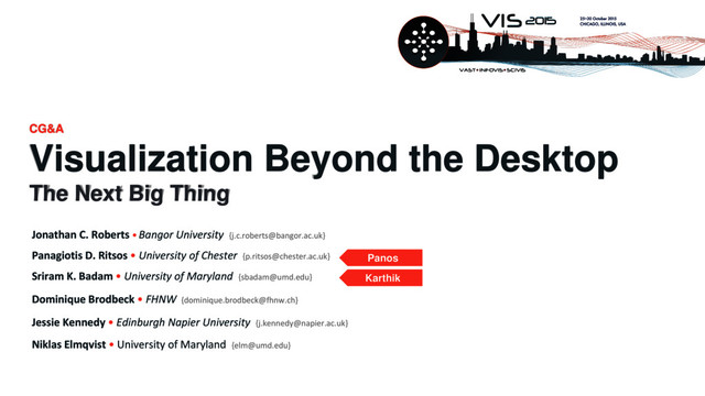 Visualization for everyday use -> increased adoption rate of novel interaction tech New modalities -> new opportunities and challenges for visualization. Embrace novel interaction technologies for visualization, step away from our desktops
