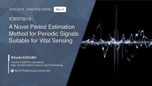 KAMIYA Laboratory Dep. of Information Science and Technology Ritsuki KOKUBO "JDIJ1SFGFDUVSBM6OJWFSTJUZ A Novel Period Estimation Method for Periodic Signals Suitable for Vital Sensing ICBSP2019