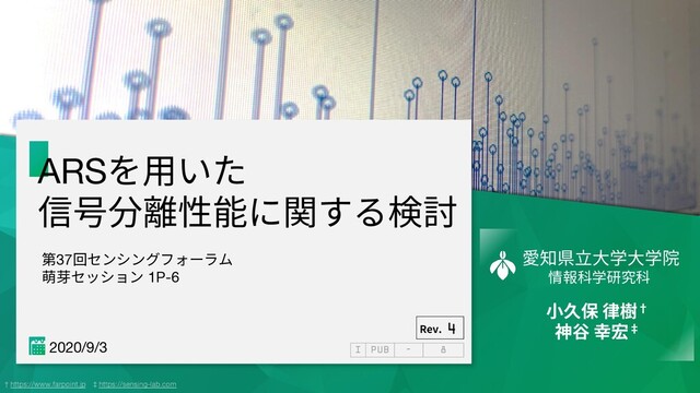 etc... ARS† DFT AMDF 周期推定 ・・・ 呼吸間隔推定など幅広い⽤途 ARSの特徴 計算量が少ない DFTのおよそ1/100 [1] 複数周期信号の周期を別々に推定可 機器台数を削減でき,コストを抑えられる [1] Y . Kamiya: A simple parameter estimation method for periodic signals applicable to vital sensing using Doppler sensors, SICE Journal of Control, Measurement, and System Integration, Vol. 10, No. 5, pp. 378-384, September 2017.