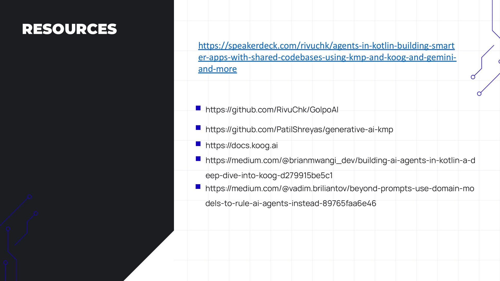 We'll also cover production-ready concerns like concurrency control, observability, and debugging intelligent flows—giving you a hands-on blueprint for embedding intelligence directly into your shared Kotlin architecture.