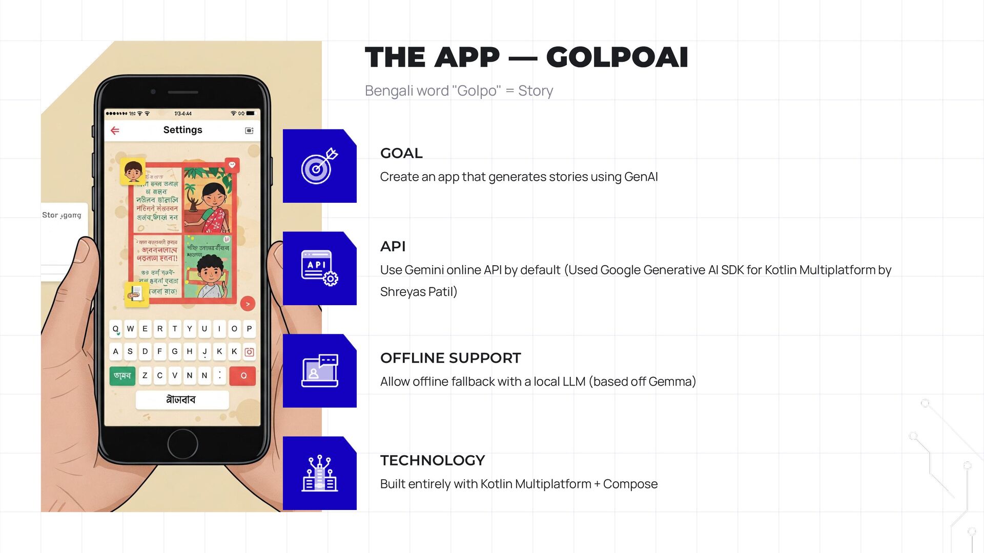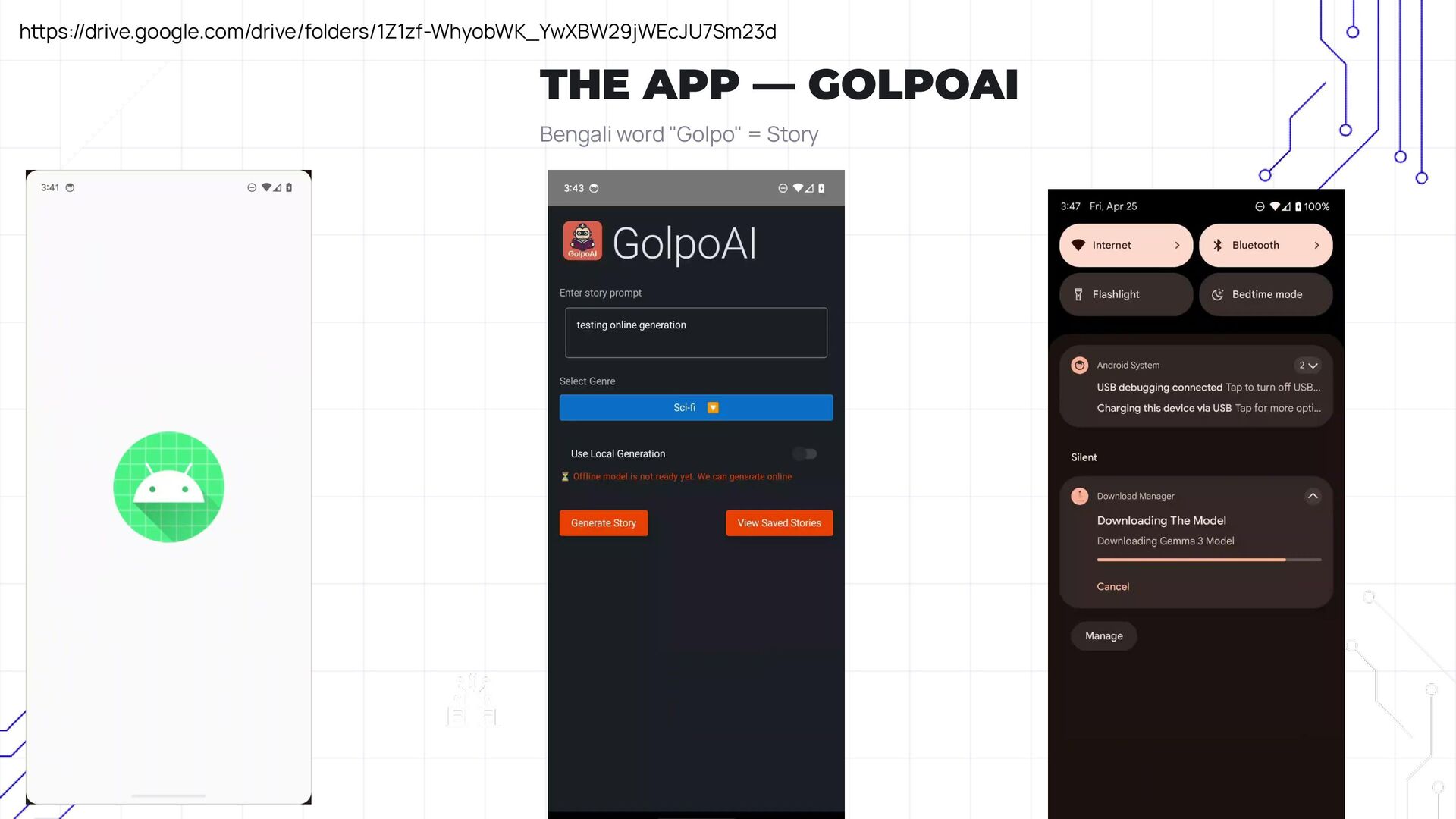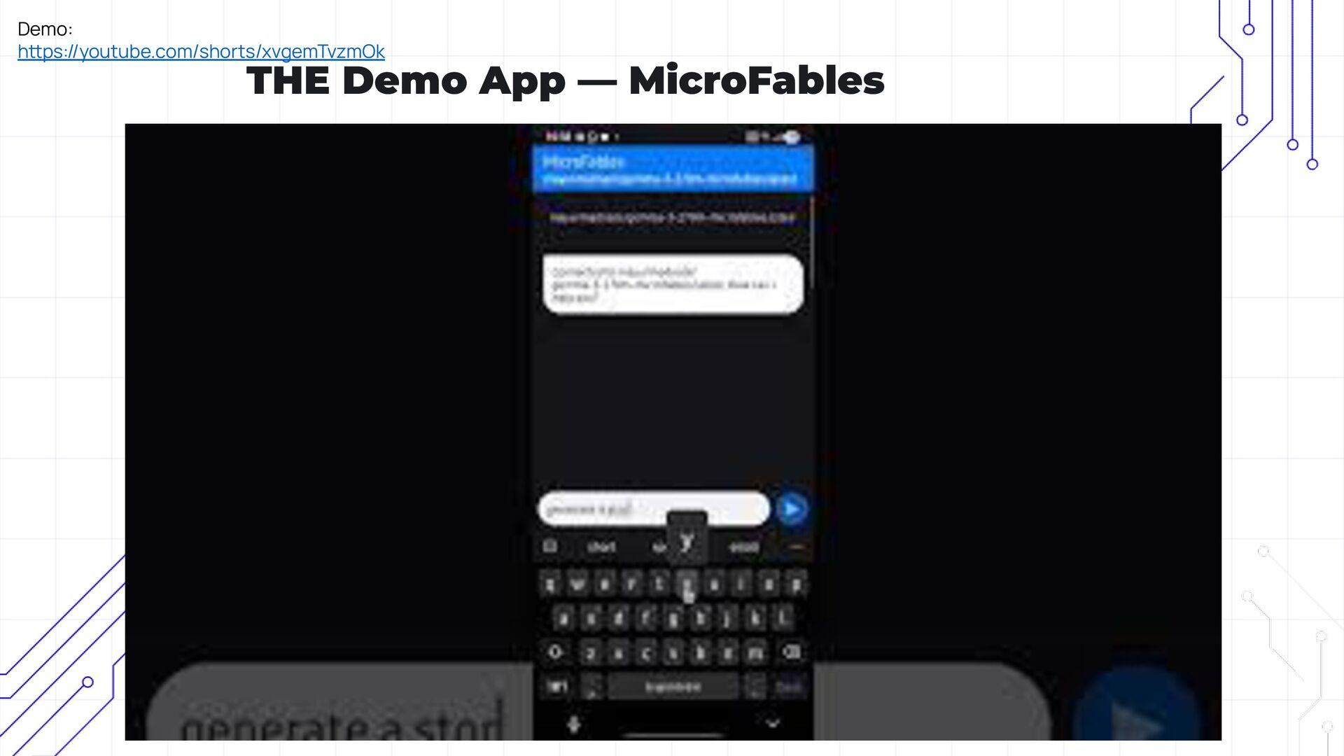 In essence, the app is a story generator, and the demo highlights how different model variations can enrich the storytelling experience. This abstract approach will give attendees a clear picture of how we’re blending API-based and on-device techniques to craft dynamic stories.