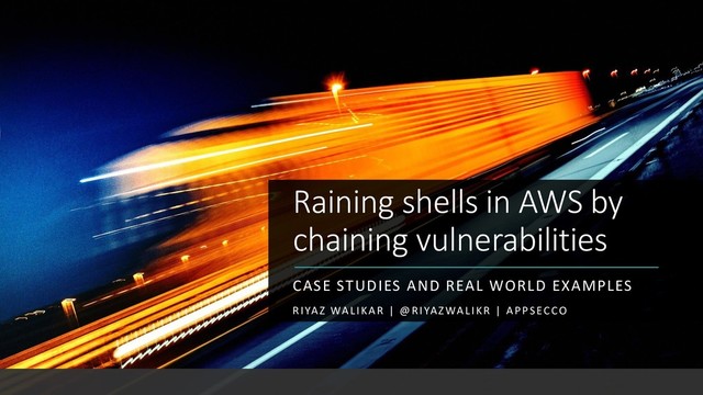 to access to systems and data beyond the plane of attack ▪ Demos of 3 cool scenarios that we have encountered before that allowed us to gain access to servers and data by chaining multiple vulnerabilities ▪ Possibly, talk about mitigations, if time permits, and share other stories that you folks may have
