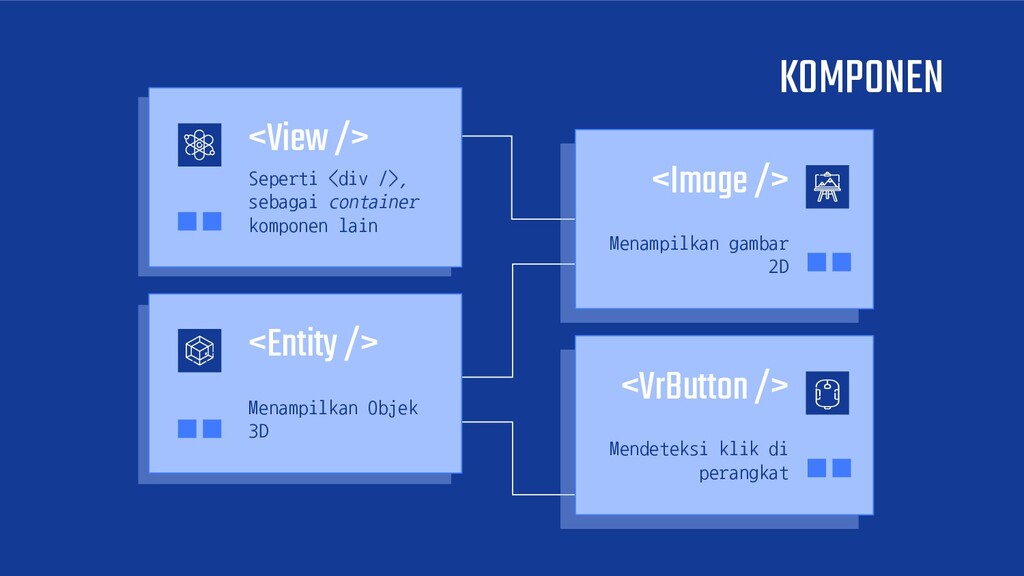 />, sebagai container komponen lain Menampilkan gambar 2D Mendeteksi klik di perangkat <Entity /> <VrButton />