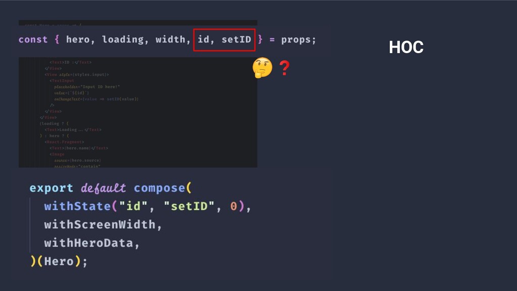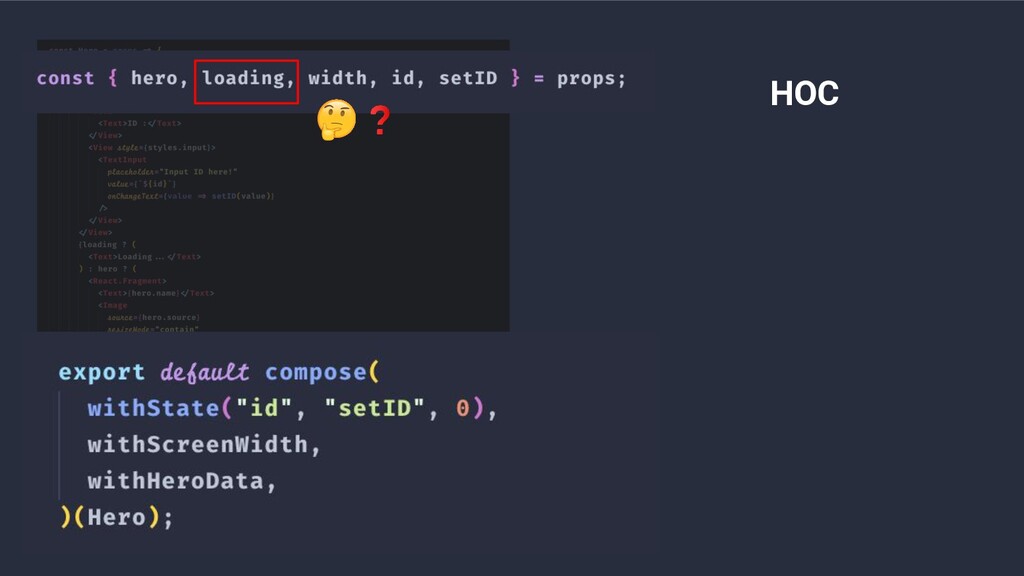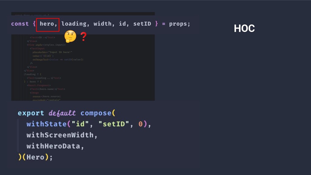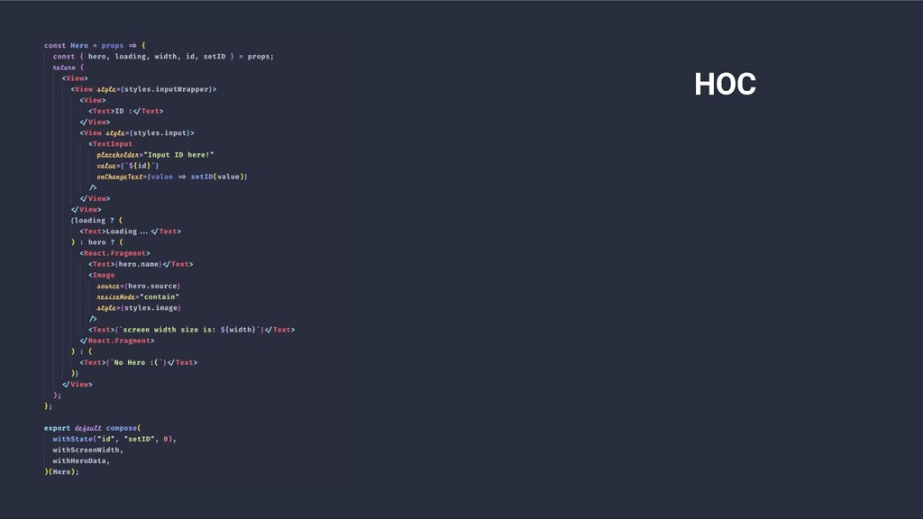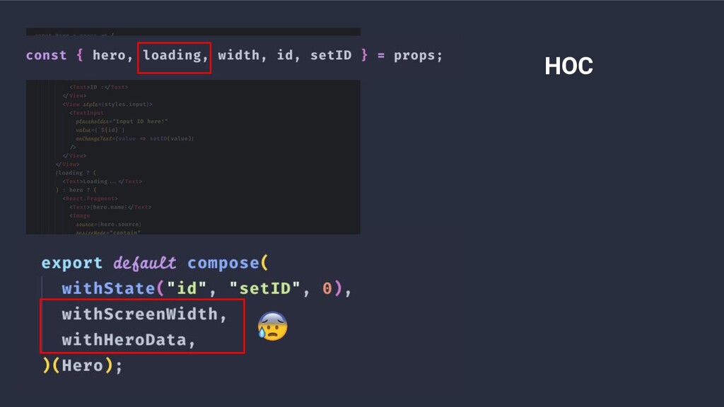 • Higher-Order Components a.k.a HOC • Render Props