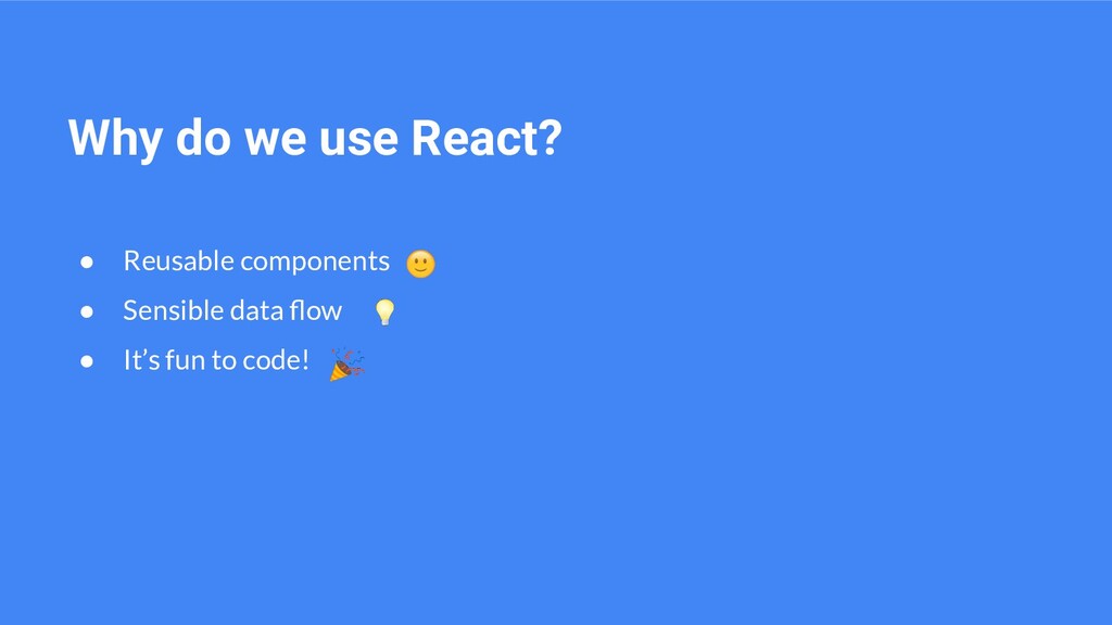 Why do we use React? • Reusable components • Sensible