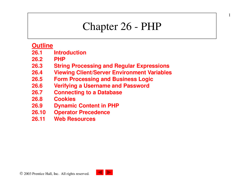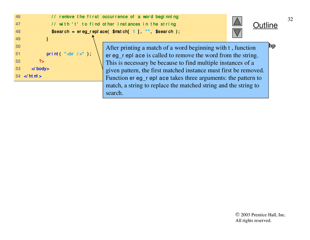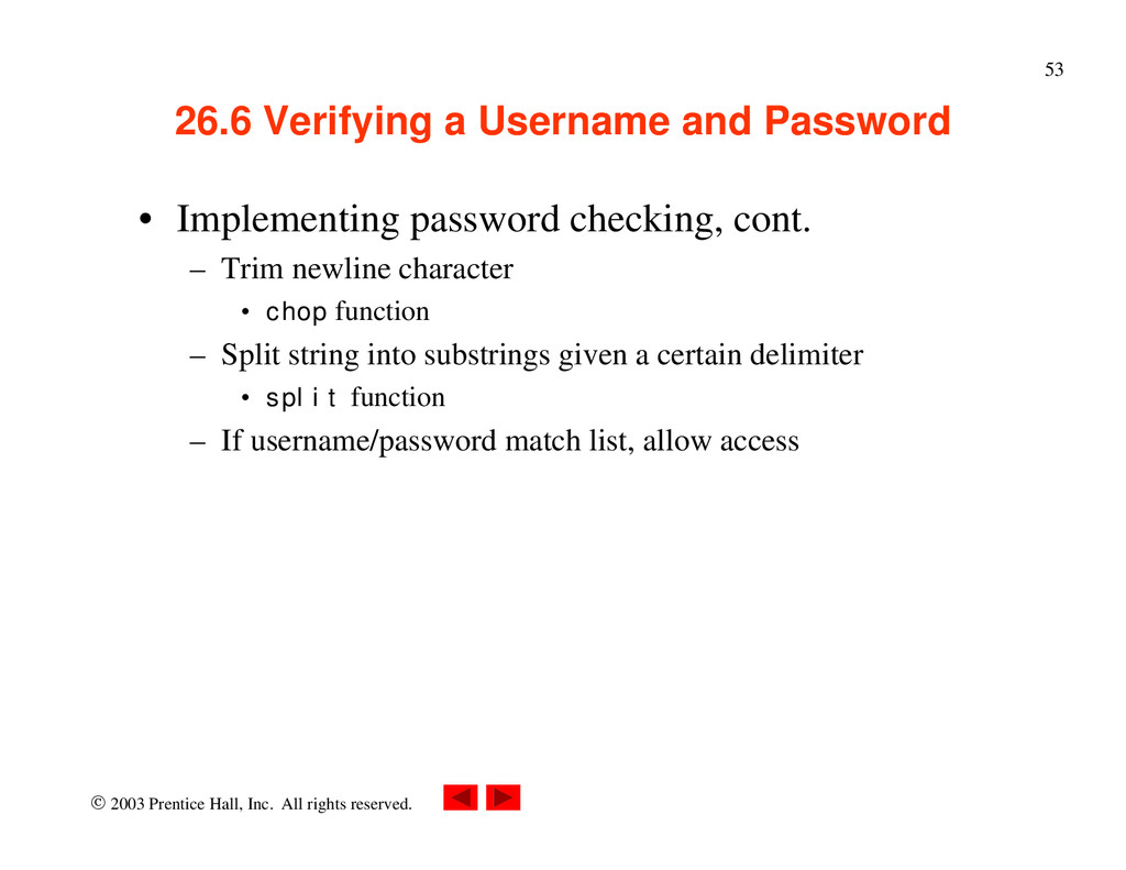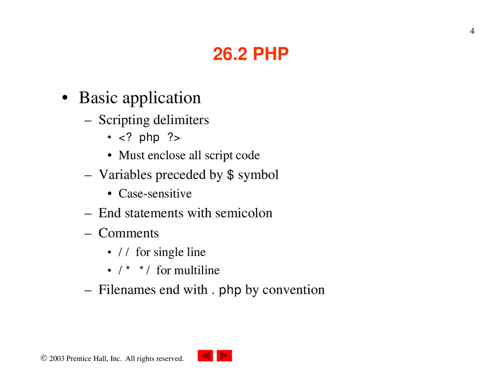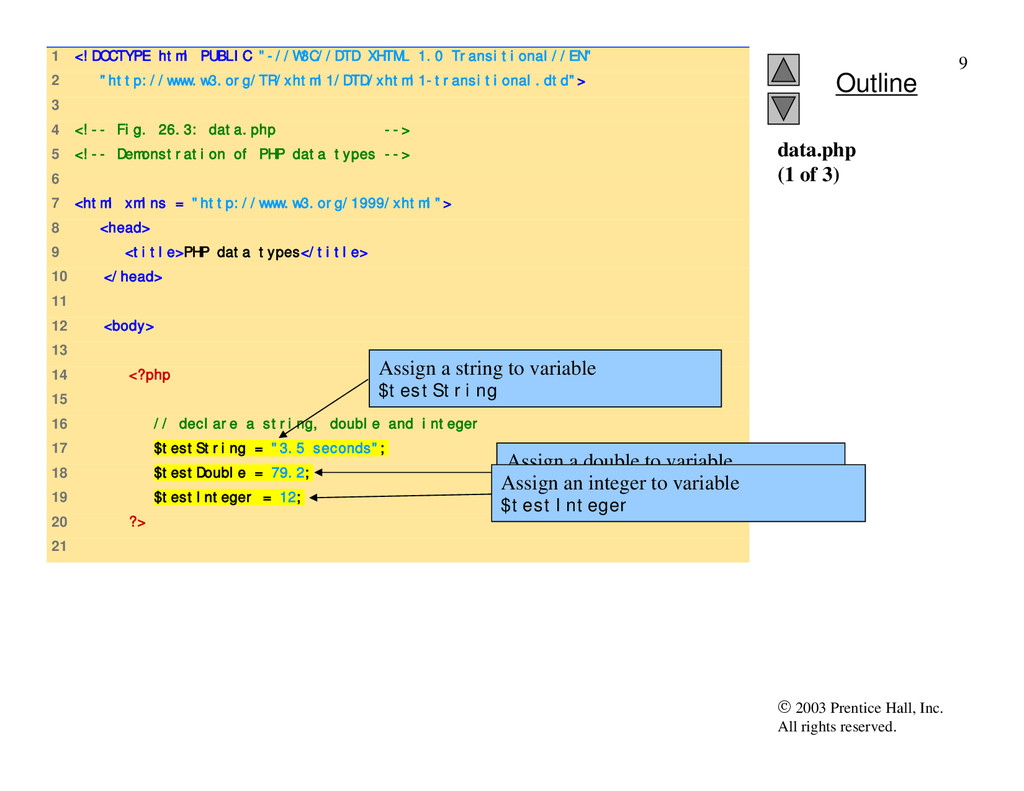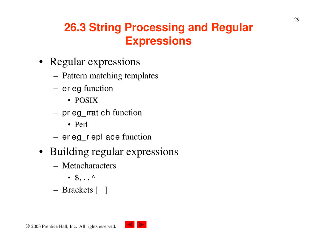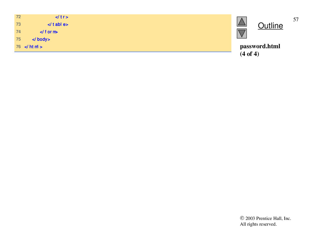47 if ( $email == "" ) { 48 $formerrors[ "emailerror" ] = true; 49 $iserror = true; 50 } 51 52 if ( !ereg( "^\([0-9]{3}\)[0-9]{3}-[0-9]{4}$", $phone ) ) { 53 $formerrors[ "phoneerror" ] = true; 54 $iserror = true; 55 } 56 57 if ( !$iserror ) { 58 59 // build INSERT query 60 $query = "INSERT INTO contacts " . 61 "( LastName, FirstName, Email, Phone, Book, OS ) " . 62 "VALUES ( '$lname', '$fname', '$email', " . 63 "'" . quotemeta( $phone ) . "', '$book', '$os' )"; 64 65 // Connect to MySQL 66 if ( !( $database = mysql_connect( "localhost", 67 "httpd", "" ) ) ) 68 die( "Could not connect to database" ); 69 70 // open MailingList database 71 if ( !mysql_select_db( "MailingList", $database ) ) 72 die( "Could not open MailingList database" ); dynamicForm.php (3 of 9) If there were no errors, query the MySQL database.