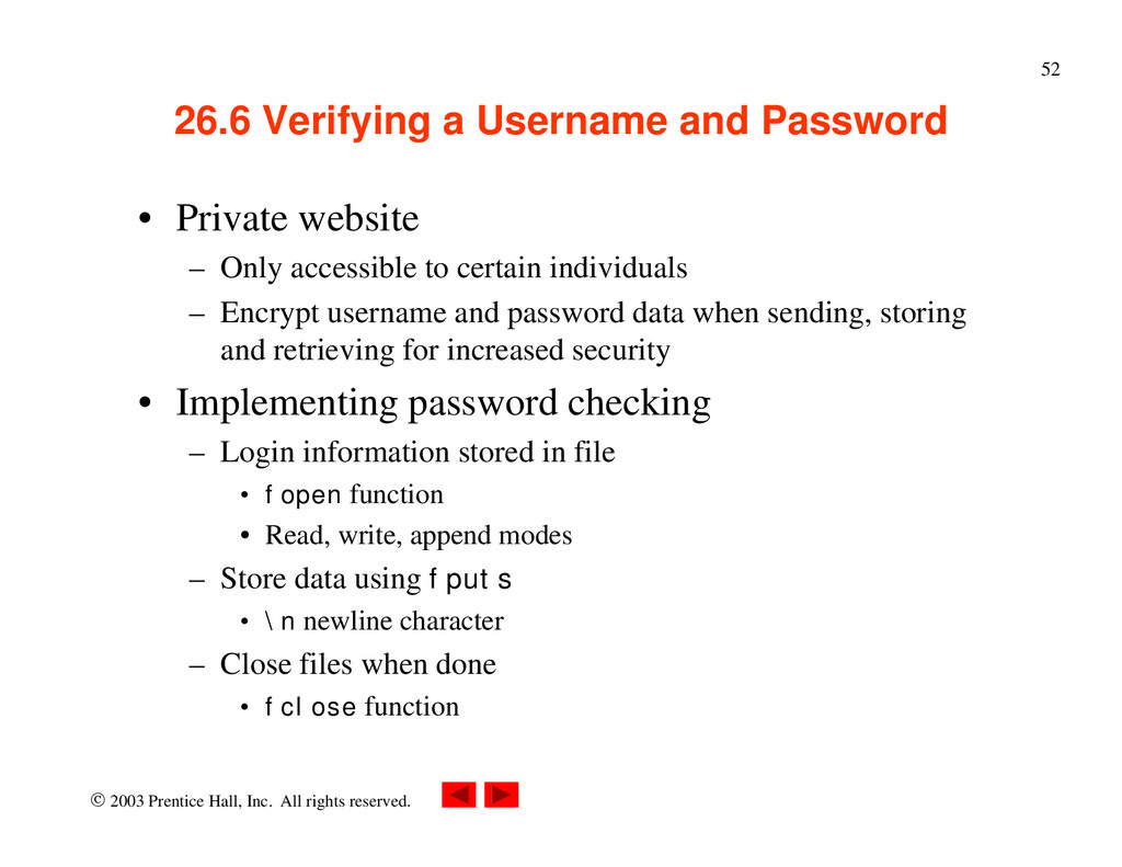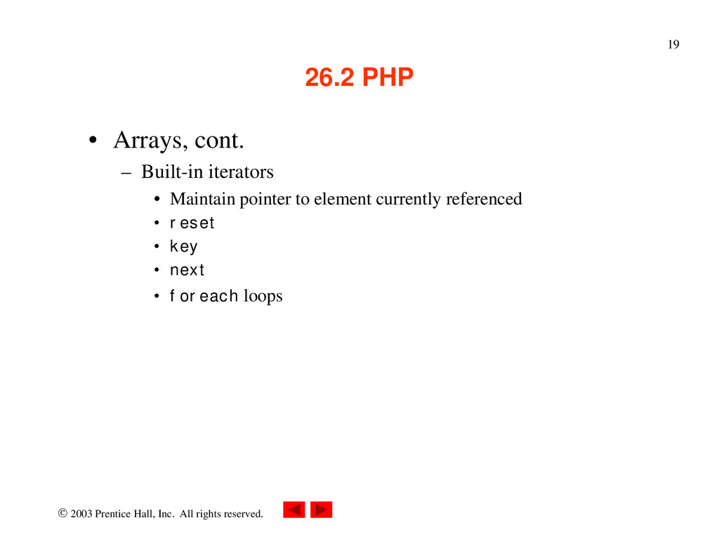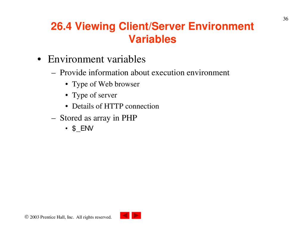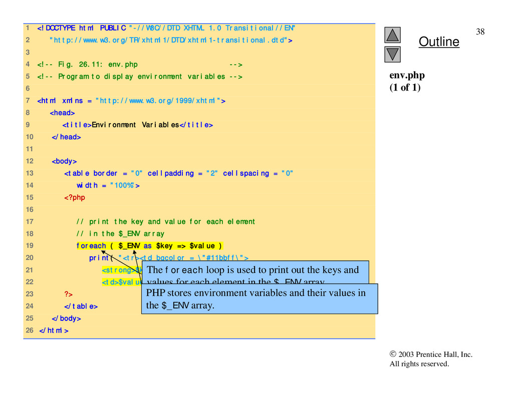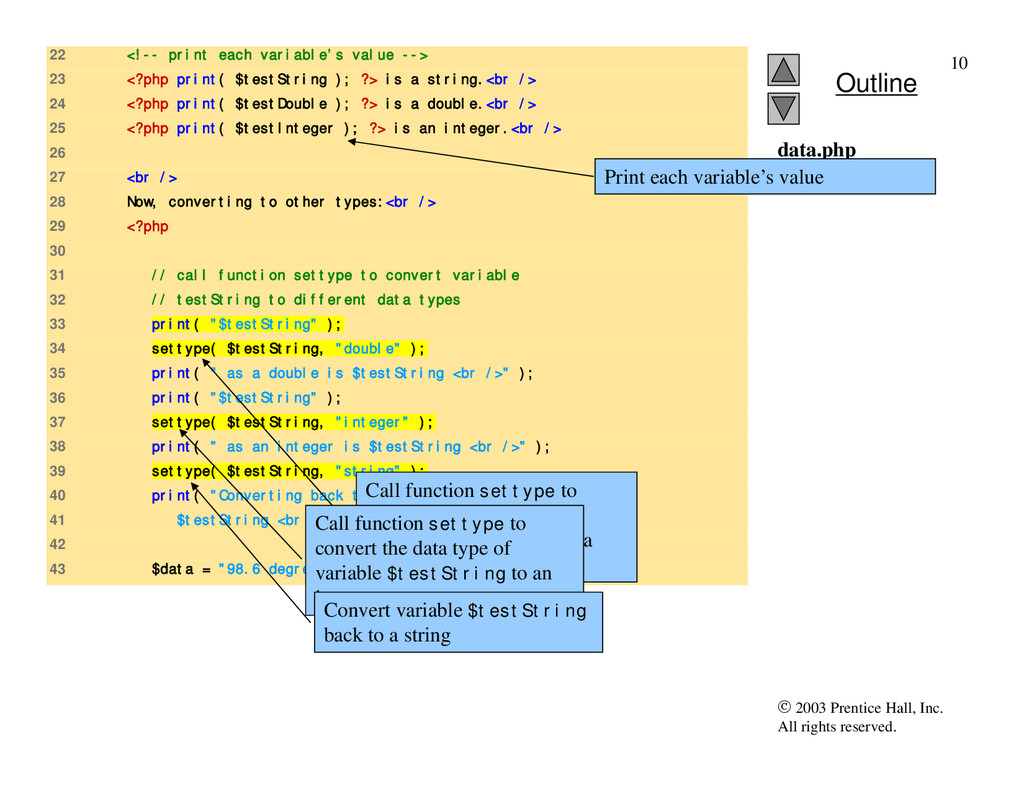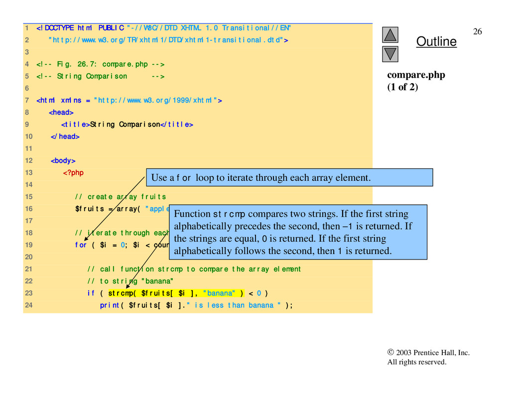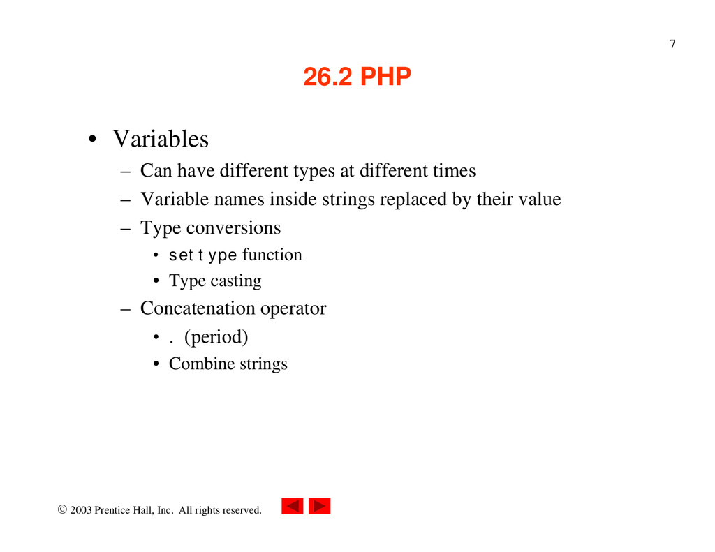 47 if ( $email == "" ) { 48 $formerrors[ "emailerror" ] = true; 49 $iserror = true; 50 } 51 52 if ( !ereg( "^\([0-9]{3}\)[0-9]{3}-[0-9]{4}$", $phone ) ) { 53 $formerrors[ "phoneerror" ] = true; 54 $iserror = true; 55 } 56 57 if ( !$iserror ) { 58 59 // build INSERT query 60 $query = "INSERT INTO contacts " . 61 "( LastName, FirstName, Email, Phone, Book, OS ) " . 62 "VALUES ( '$lname', '$fname', '$email', " . 63 "'" . quotemeta( $phone ) . "', '$book', '$os' )"; 64 65 // Connect to MySQL 66 if ( !( $database = mysql_connect( "localhost", 67 "httpd", "" ) ) ) 68 die( "Could not connect to database" ); 69 70 // open MailingList database 71 if ( !mysql_select_db( "MailingList", $database ) ) 72 die( "Could not open MailingList database" ); dynamicForm.php (3 of 9) If there were no errors, query the MySQL database.