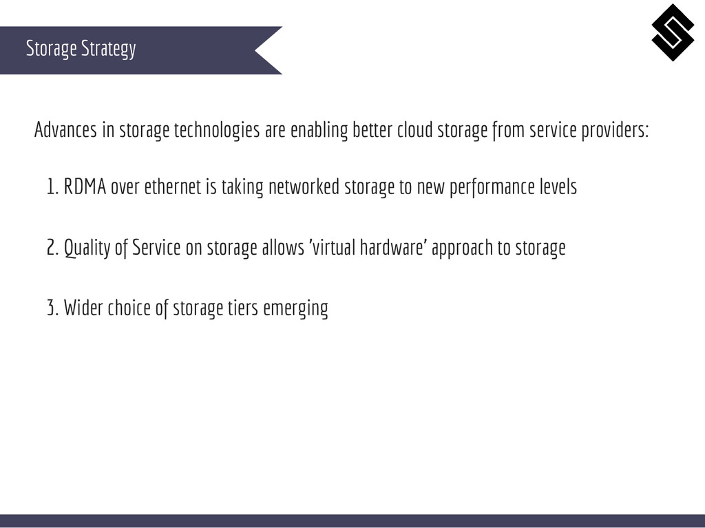 to new performance levels 2. Quality of Service on storage allows 'virtual hardware' approach to storage 3. Wider choice of storage tiers emerging Advances in storage technologies are enabling better cloud storage from service providers: