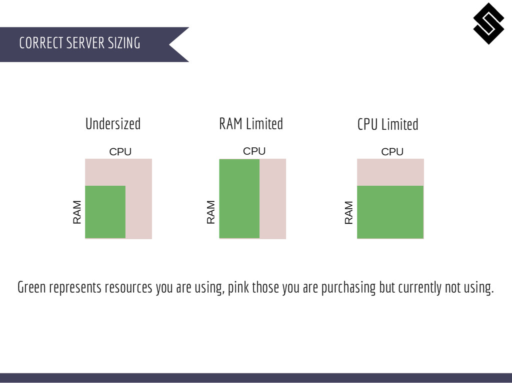 RAM Undersized SECTION B CPU RAM RAM Limited SECTION B CPU RAM CPU Limited Green represents resources you are using, pink those you are purchasing but currently not using.