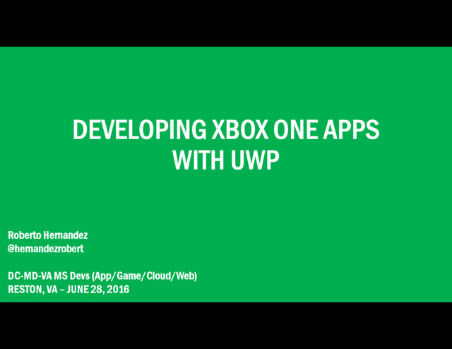 https://msdn.microsoft.com/en-us/windows/uwp/xbox-apps/getting-started • DESIGNING FOR XBOX AND TV: https://msdn.microsoft.com/windows/uwp/input-and-devices/designing-for-tv/ • BLOG POST: BUILDING APPS FOR XBOX WITH UWP: http://blog.infernored.com/building-apps-for-xbox-one-with-uwp All icons in this slide deck are from icons8.com