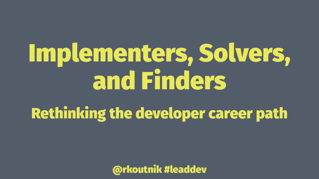 Implementers, Solvers, and Finders Rethinking the developer career path @rkoutnik