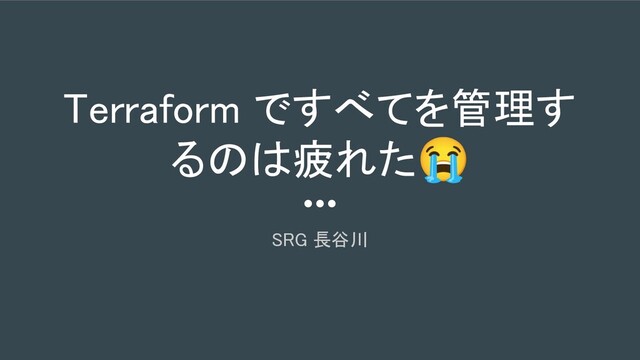 Terraform ですべてを管理す るのは疲れた😭 SRG 長谷川