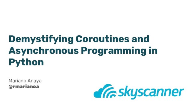 run, and updates them with .send(), next(), .throw(), etc. • The coroutine we write, should only delegate with await (yield from), to some other 3rd party generator, that will do the actual I/O. • yield , yield from, await give the control back to the scheduler.