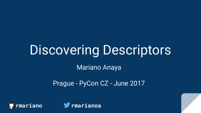 Descriptors are deployed in the language infrastructure. • @property, @classmethod,