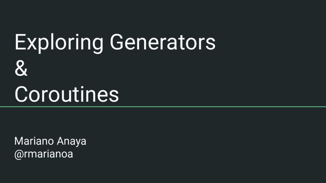 scheduled to run, and updates them with .send(), next(), .throw(), etc. • The coroutine we write, should only delegate with await (yield from), to some other 3rd party generator, that will do the actual I/O. • yield , yield from, await give the control back to the scheduler.
