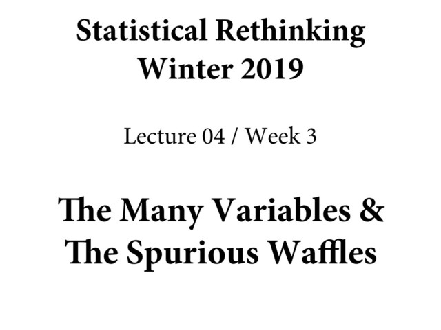 M UP LOPX IPX UP ESBX UIJT TFF UIF 0WFSUIJOLJOH CPY BU UIF FOE PG UI L MJLF NVDI CVU UIJT UZQF PG EJBHSBN EPFT B MPU PG XPSL *U SFQSFTFOU FM -JLF PUIFS NPEFMT JU JT BO BOBMZUJDBM BTTVNQUJPO ćF TZNCPMT " FSWFE WBSJBCMFT ćF BSSPXT TIPX EJSFDUJPOT PG JOĘVFODF 8IBU UIJT % NBZ EJSFDUMZ JOĘVFODF % NBZ EJSFDUMZ JOĘVFODF % Median age of marriage Marriage rate Divorce rate Implications: (1) M is a function of A (2) D is a function of A and M (3) The total causal effect of A has two paths: (a) A –> M –> D (b) A –> D