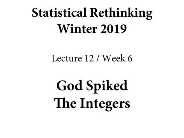 Lecture 12 of the Dec 2018 through March 2019 edition of Statistical Rethinking. Covers Chapter 11 and 11, generalized linear models, binomial, Poisson GLMs, survival analysis.