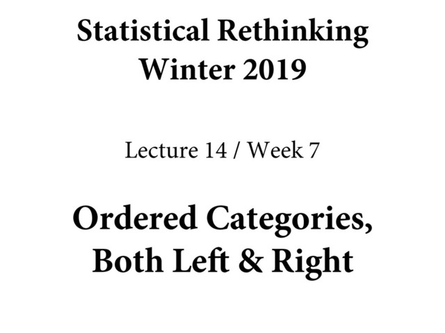 Lecture 14 of the Dec 2018 through March 2019 edition of Statistical Rethinking. Covers Chapter 12, ordered categorical outcomes and ordered categorical predictor variables.