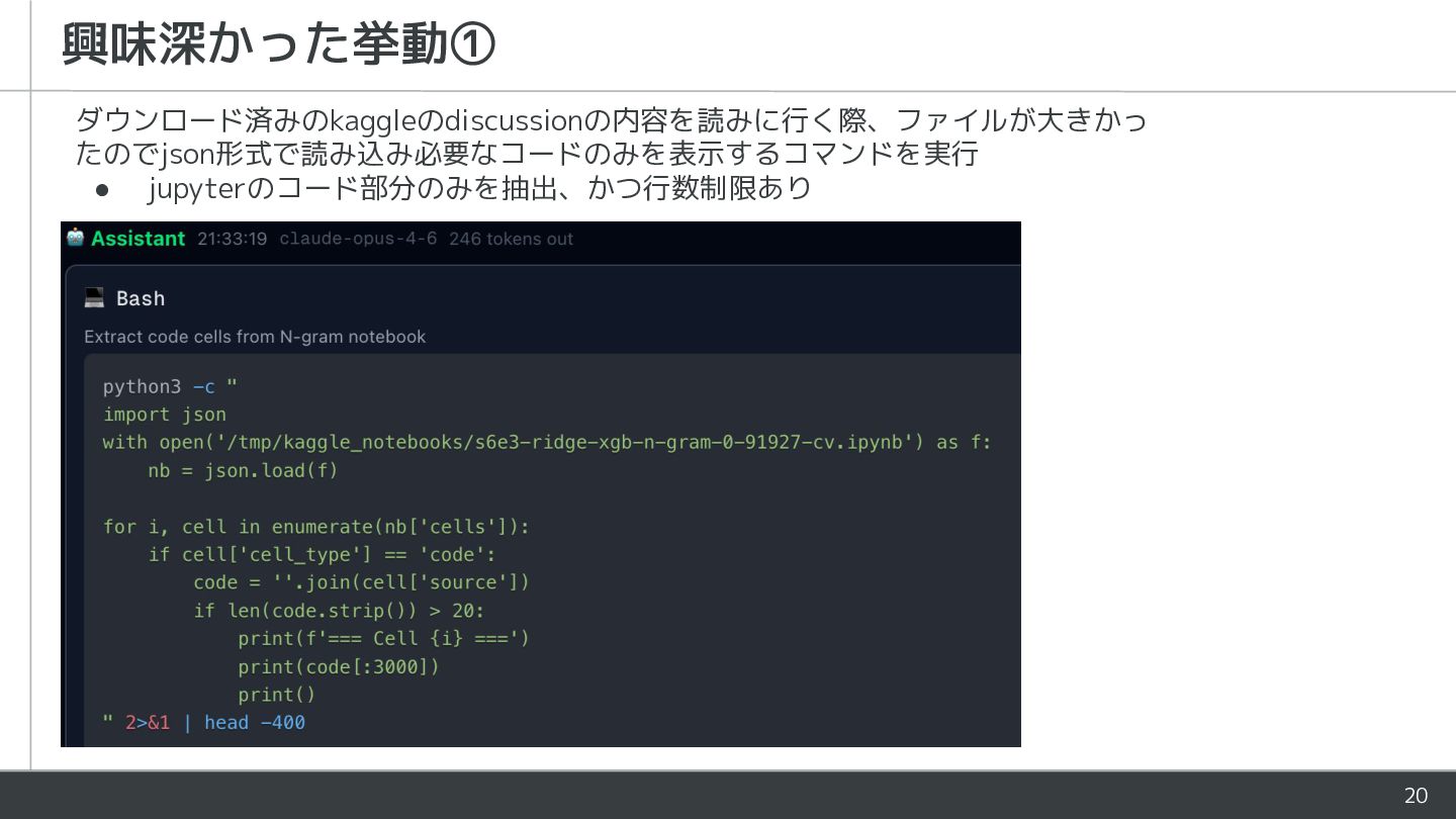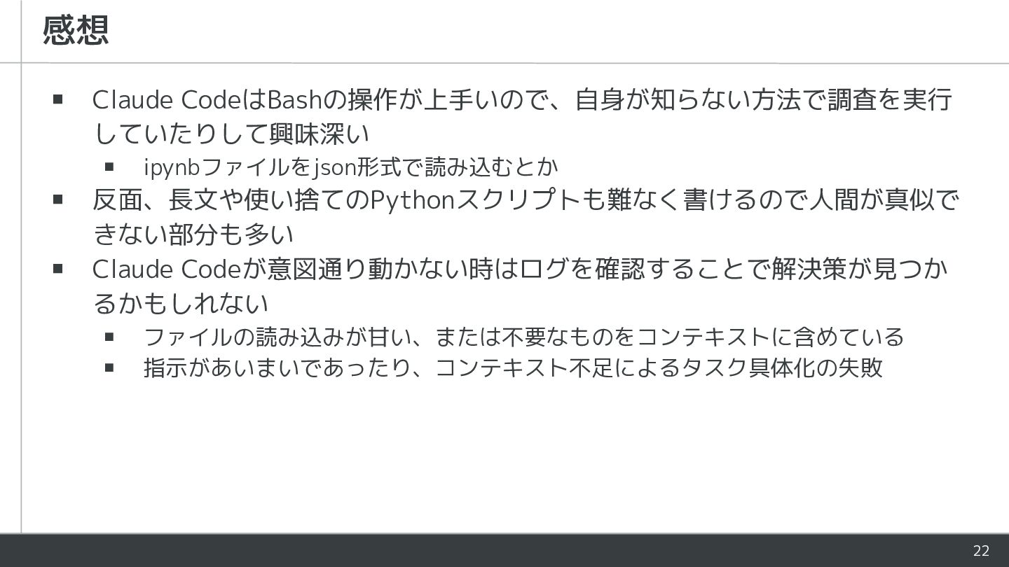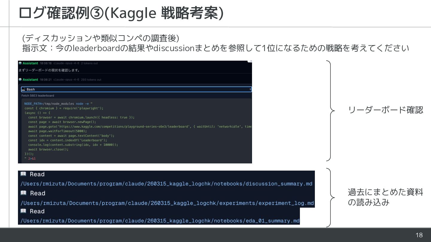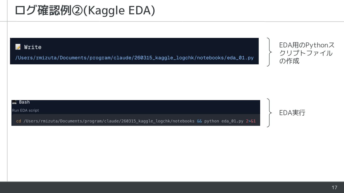 uments/program/claude/260314_parse_claudelog","sessionId":"68f0d358-ea6c-4a3b-83c2-b14e29b7d0e6","version":"2.1.76","gitBranch":"HEAD"} {"type":"file-history-snapshot","messageId":"db2c4386-1079-4e31-9a79-473c8147bfbc","snapshot":{"messageId":"db2c4386-1079-4e31-9a79-473c8147bfbc","trackedFileBacku ps":{},"timestamp":"2026-03-14T02:18:54.420Z"},"isSnapshotUpdate":false} {"parentUuid":"db2c4386-1079-4e31-9a79-473c8147bfbc","isSidechain":false,"message":{"model":"claude-opus-4-6","id":"msg_01N2m1vQbDW8Ck6z7A29vS5r","type":"messa ge","role":"assistant","content":[{"type":"text","text":"\n\nまず、Claude Codeのログの構造を理 解する必要がありま す。"}],"stop_reason":null,"stop_sequence":null,"usage":{"input_tokens":3,"cache_creation_input_tokens":8807,"cache_read_input_tokens":6489,"cache_creation":{"ephemeral_ 5m_input_tokens":0,"ephemeral_1h_input_tokens":8807},"output_tokens":2,"service_tier":"standard","inference_geo":"not_available"}},"requestId":"req_011CZ2AtTPmu3QkzP Rpp7yx4","type":"assistant","uuid":"1aa61c63-c52a-4564-a82b-2671017fd504","timestamp":"2026-03-14T02:18:57.261Z","userType":"external","cwd":"/Users/rmizuta/Documen ts/program/claude/260314_parse_claudelog","sessionId":"68f0d358-ea6c-4a3b-83c2-b14e29b7d0e6","version":"2.1.76","gitBranch":"HEAD"} {"parentUuid":"1aa61c63-c52a-4564-a82b-2671017fd504","isSidechain":false,"message":{"model":"claude-opus-4-6","id":"msg_01N2m1vQbDW8Ck6z7A29vS5r","type":"messa ge","role":"assistant","content":[{"type":"tool_use","id":"toolu_01Xrmnq6ajKHrvpMTN3aVHWU","name":"Bash","input":{"command":"ls ~/.claude/projects/ | head -20","description":"List Claude projects directory"},"caller":{"type":"direct"}}],"stop_reason":null,"stop_sequence":null,"usage":{"input_tokens":3,"cache_creation_input_tokens":8807,"cache_read_input_tokens":6489,"c ache_creation":{"ephemeral_5m_input_tokens":0,"ephemeral_1h_input_tokens":8807},"output_tokens":2,"service_tier":"standard","inference_geo":"not_available"}},"requestId": "req_011CZ2AtTPmu3QkzPRpp7yx4","type":"assistant","uuid":"0b390c94-bb1f-474b-90aa-18c5b762668c","timestamp":"2026-03-14T02:18:57.699Z","userType":"external","cw d":"/Users/rmizuta/Documents/program/claude/260314_parse_claudelog","sessionId":"68f0d358-ea6c-4a3b-83c2-b14e29b7d0e6","version":"2.1.76","gitBranch":"HEAD"} ``` JSONログのフォーマット 9 ~/.claude/projects/<プロジェクト名>/<session-uuid>.jsonlの中身の例