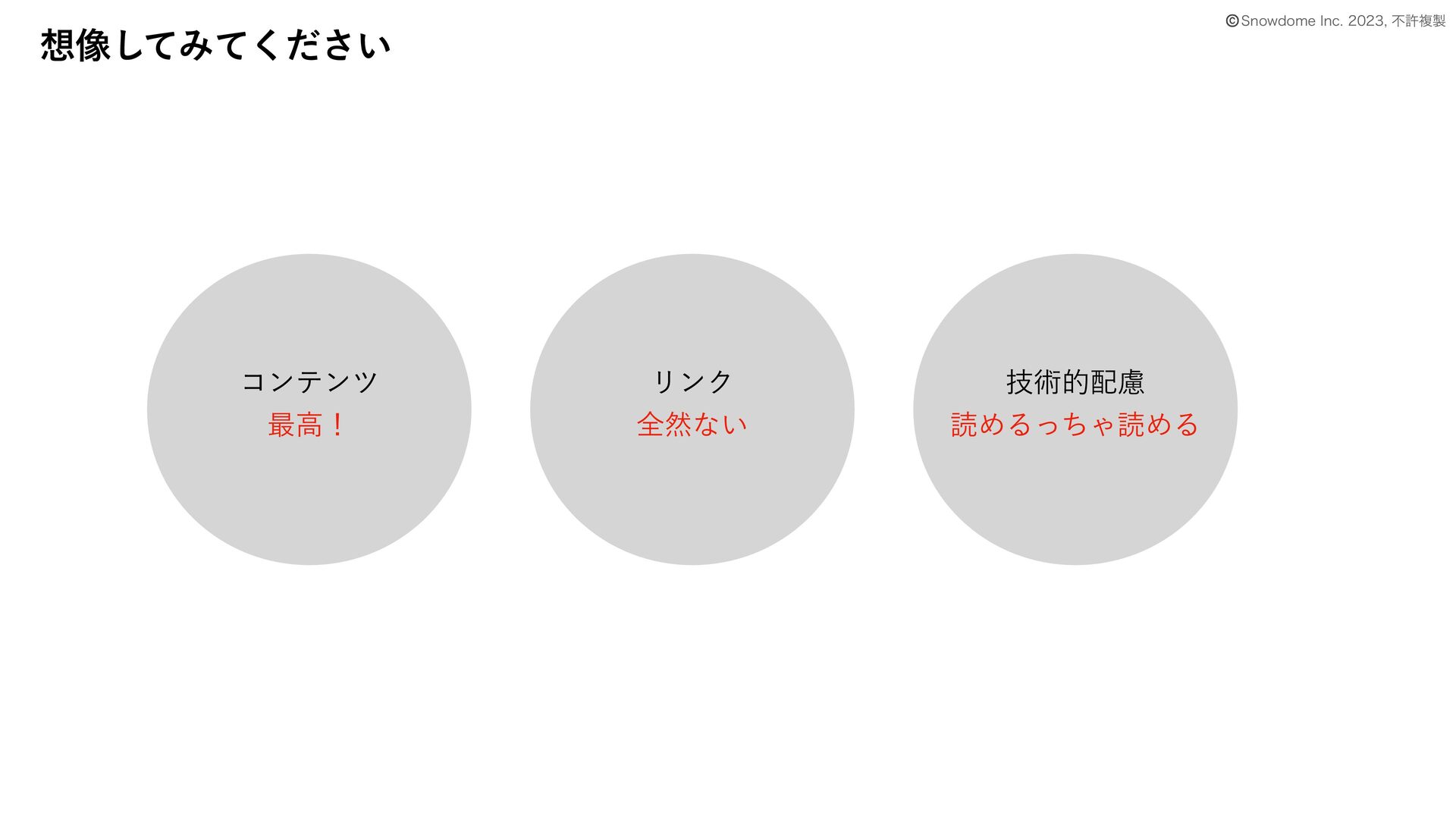 ͬ͘͟Γݴ͏ͱ̏ཁૉ © 4OPXEPNF*OD ෆڐෳ ίϯςϯπ ϦϯΫ ٕज़తྀ ༰ͷྑ͠ѱ͠ ݕࡧҙਤʹରͯ͠ߴ͍ຬΛ༩ ͑ΒΕΔ͔ʁͦͷௐͷΛऴ