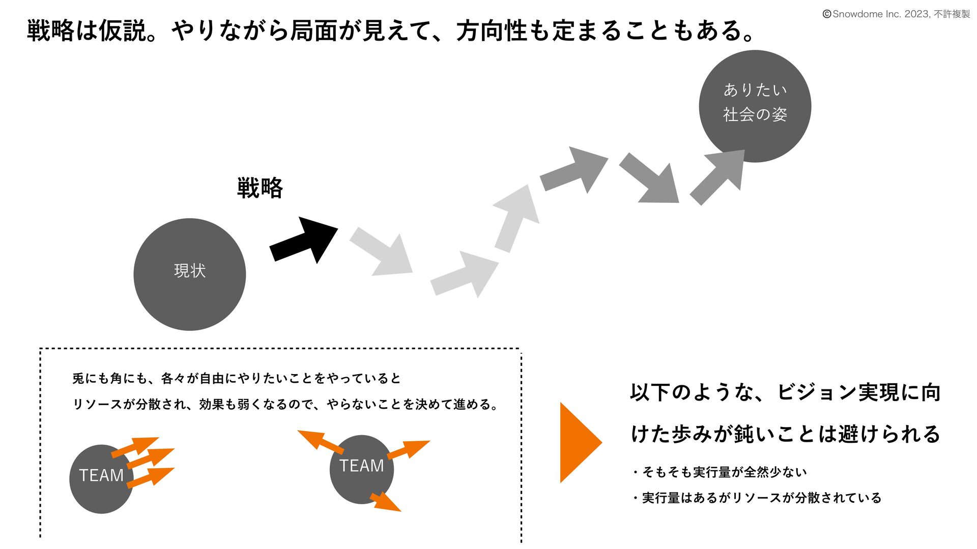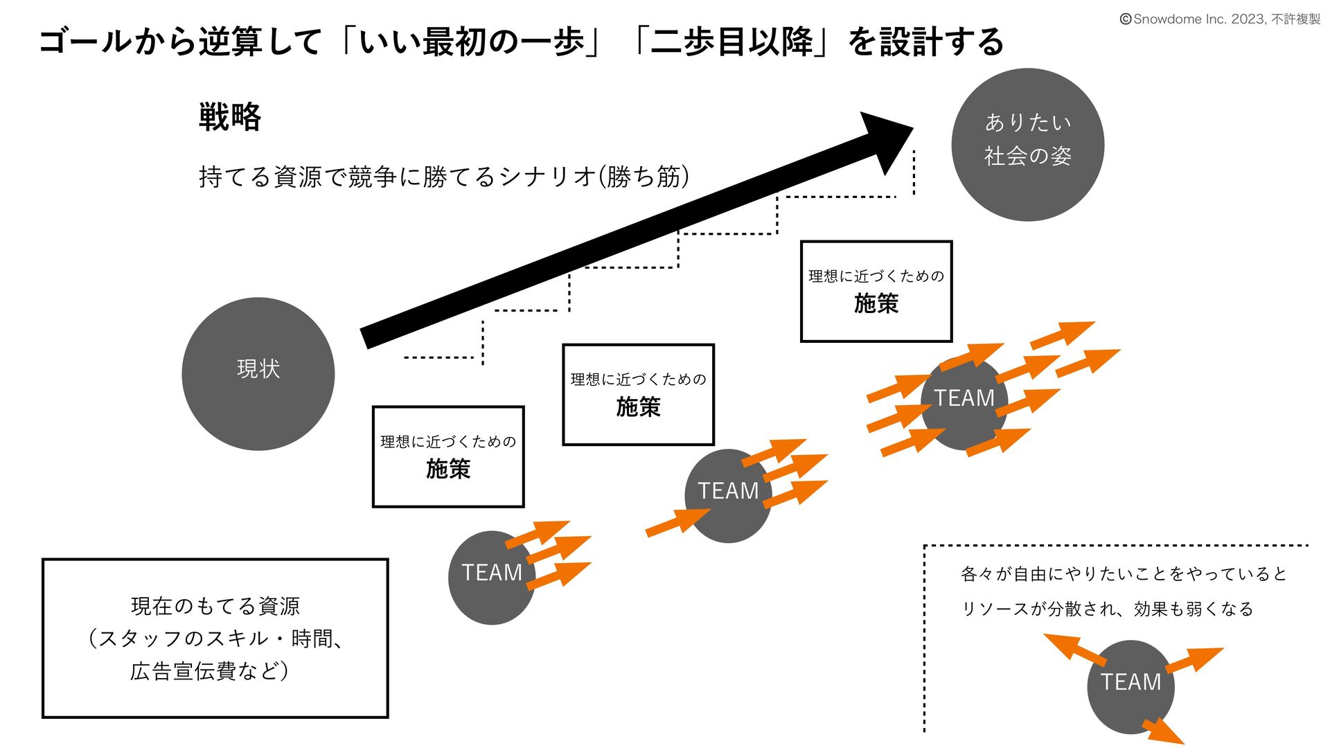 ΰʔϧ͔Βٯࢉͯ͠ʮ͍͍࠷ॳͷҰาʯʮೋาҎ߱ʯΛઃܭ͢Δ © 4OPXEPNF*OD ෆڐෳ ݱঢ় ઓུ ࣋ͯΔࢿݯͰڝ૪ʹউͯΔγφϦΦ উͪے ͋Γ͍ͨ ࣾձͷ࢟