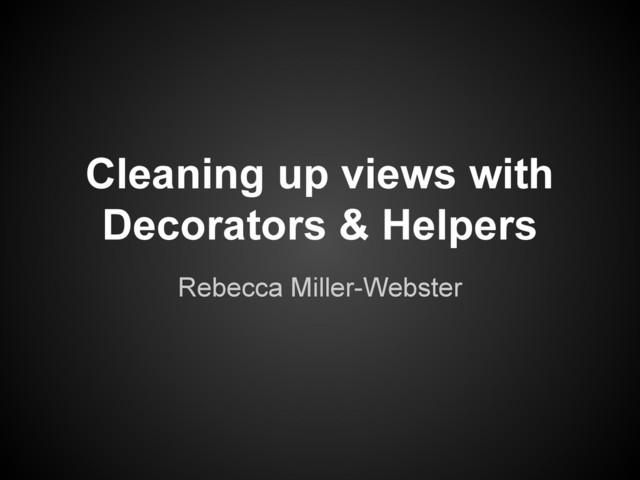 Cleaning up views with Decorators & Helpers Rebecca Miller-Webster