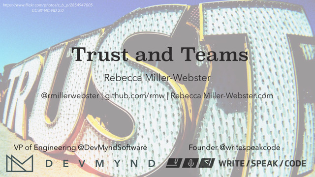 promotion • goal • belief you hold • cherished way of doing things • your “good name” • sense of happiness and wellbeing • work you or team are doing • deadline you need to meet • your reputation or status • your health or happiness • thoughts • ideas • efforts • hopes • concerns @rmillerwebster | @DevMyndSoftware | @writespeakcode