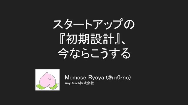 スタートアップの 『初期設計』、 今ならこうする Momose Ryoya (@rn0rno) AnyReach株式会社