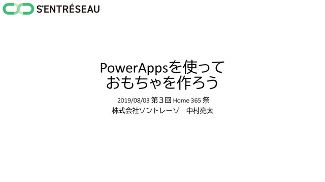 PowerAppsを使って おもちゃを作ろう 2019/08/03 第3回 Home 365 祭 株式会社ソントレーゾ 中村亮太