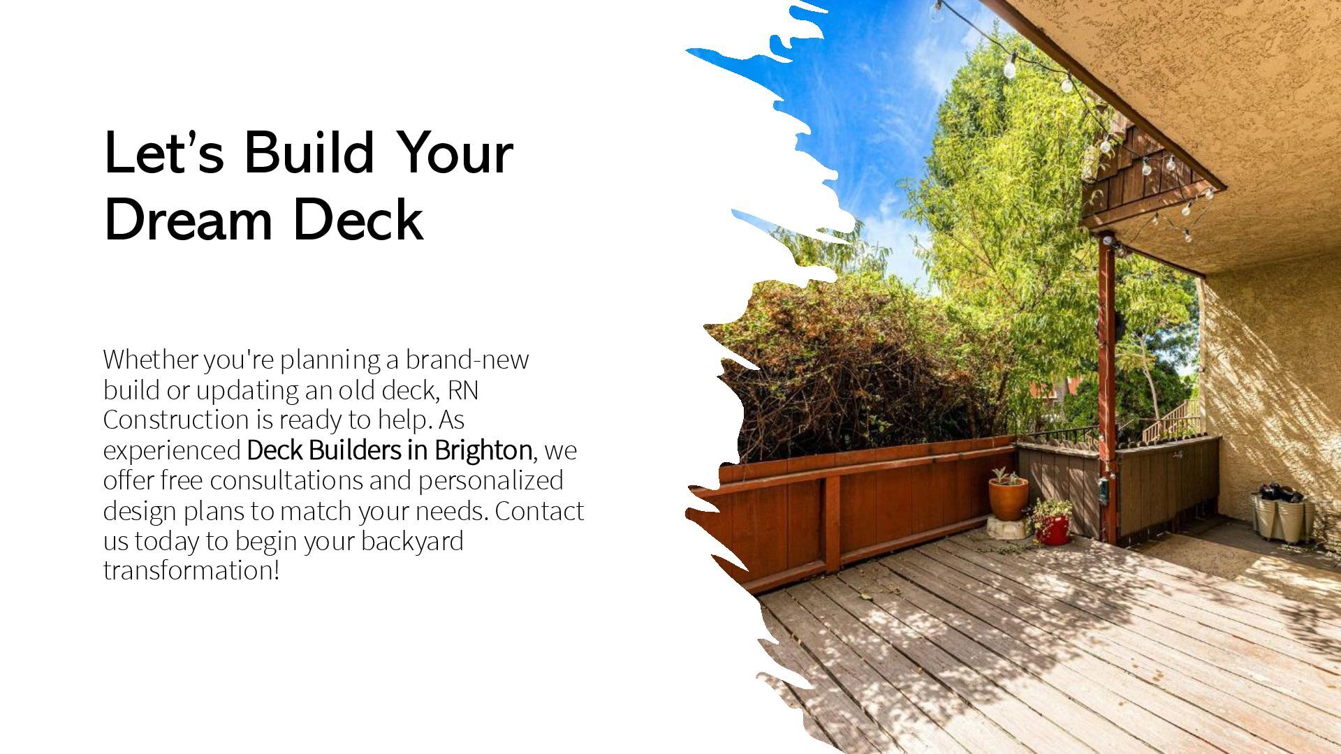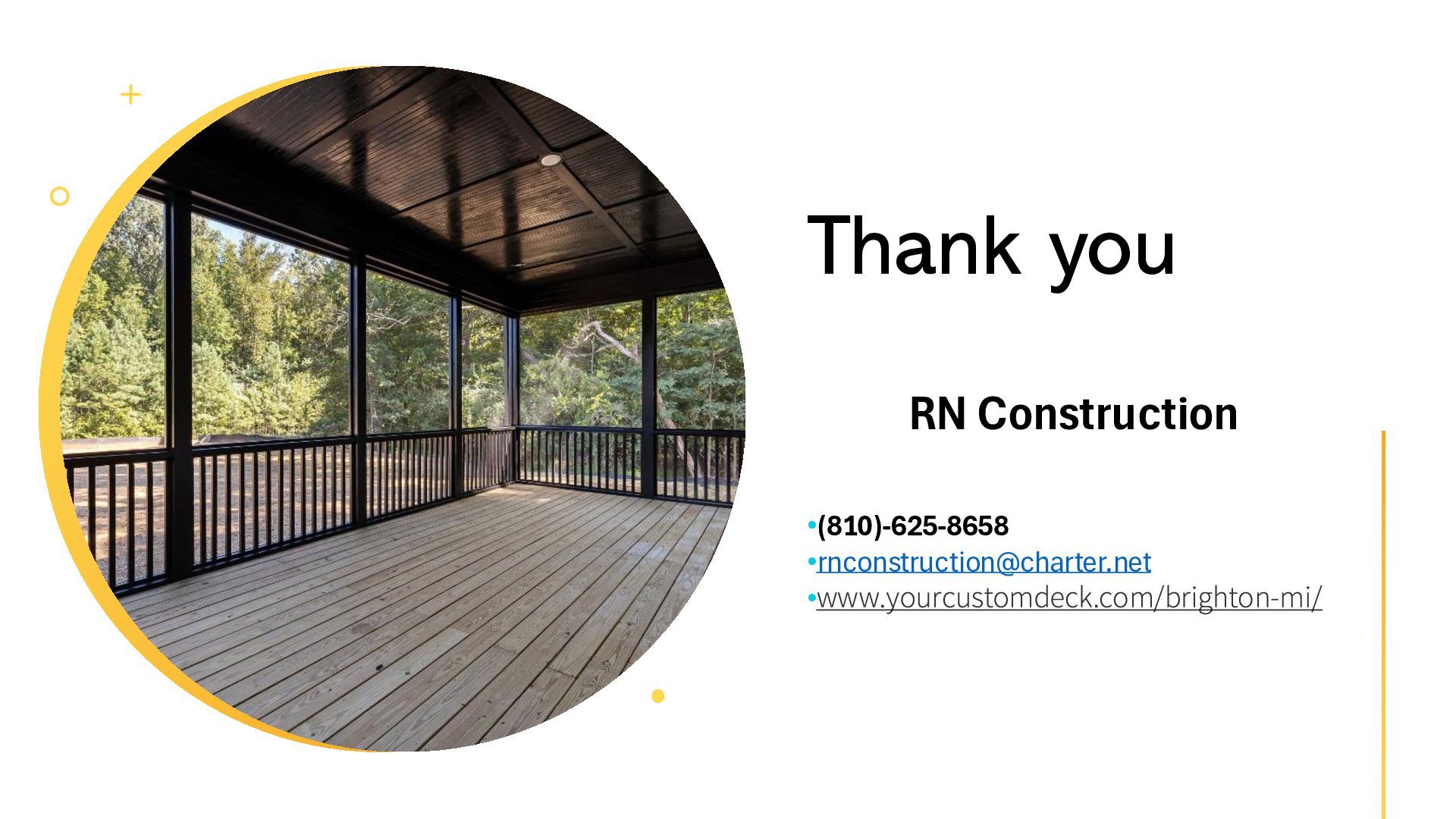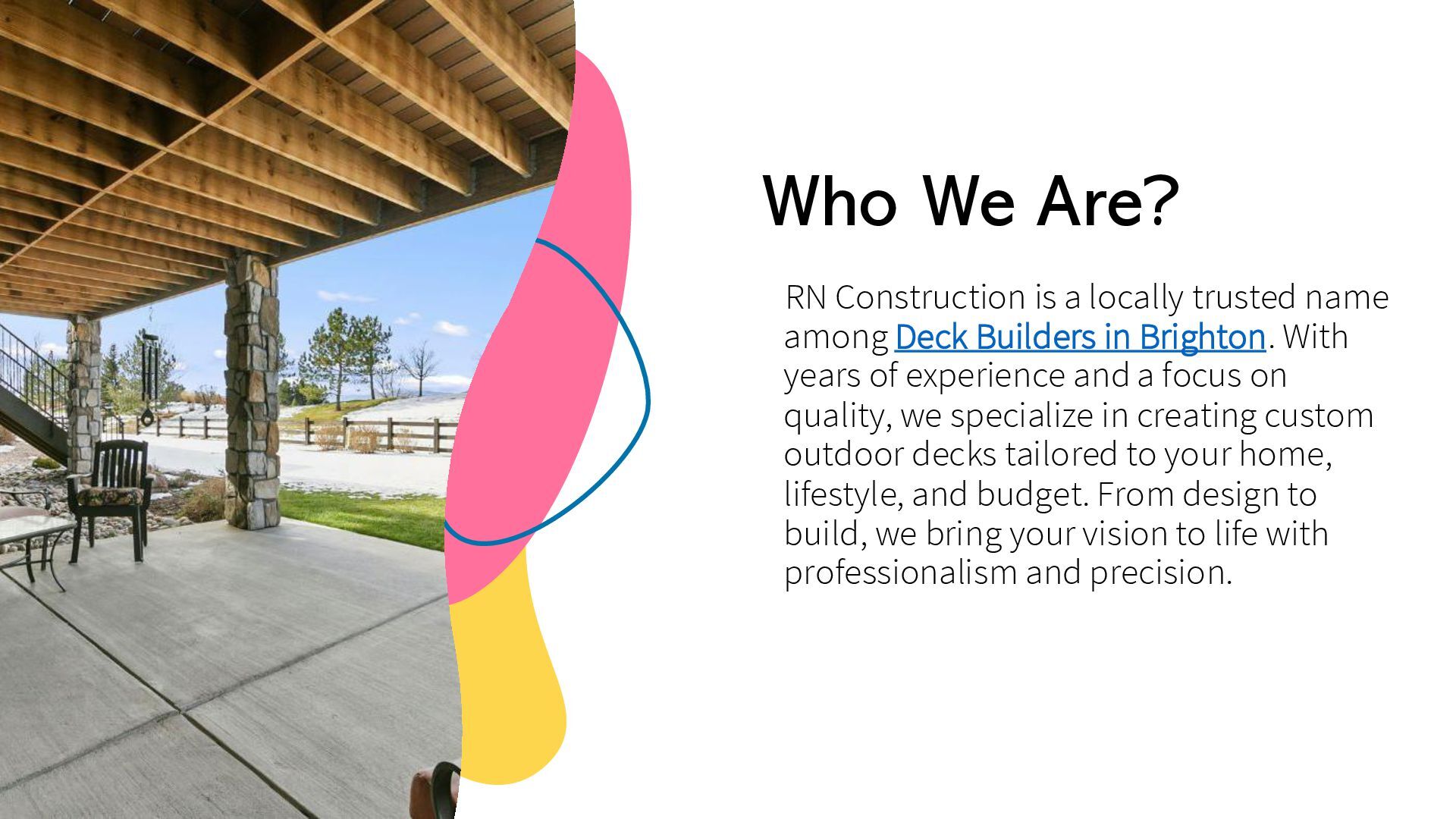 RN Construction stands out as a trusted name among Deck Builders in Brighton, offering expert craftsmanship and personalized service for every project. This overview introduces the company’s background, showcases its range of custom deck services, and highlights what sets us apart. Homeowners in Brighton can learn why we are the go-to choice for transforming outdoor spaces with quality, durability, and style. For more info:- https://yourcustomdeck.com/brighton-mi/