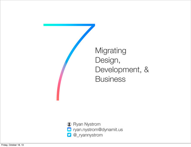 within days of having it, a letterboxed app was pretty much an insta-delete. At that point, our clients came back with urgent requests to make their app 4-inch compatible. I predict the iOS 7 effect will be worse. Within a week of running full time, those apps which haven’t been modernized to look like an iOS 7 app will look very old. They too will become insta-deletes. If you have an app in the store, We’d highly recommend looking at modernizing them pretty quick. http://tapadoo.com/2013/ios7-move-now-or-be-an-insta-delete/ Friday, October 18, 13