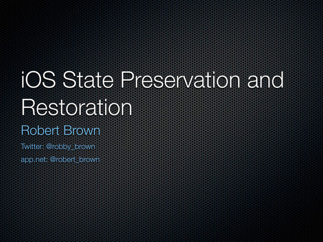 Covers iOS app state preservation and restoration with extra emphasis on NSCoding. WWCD 2012 session 208 glosses over some of the fine details of how NSCoding works. Understanding this foundation better helps in understanding state preservation and restoration.