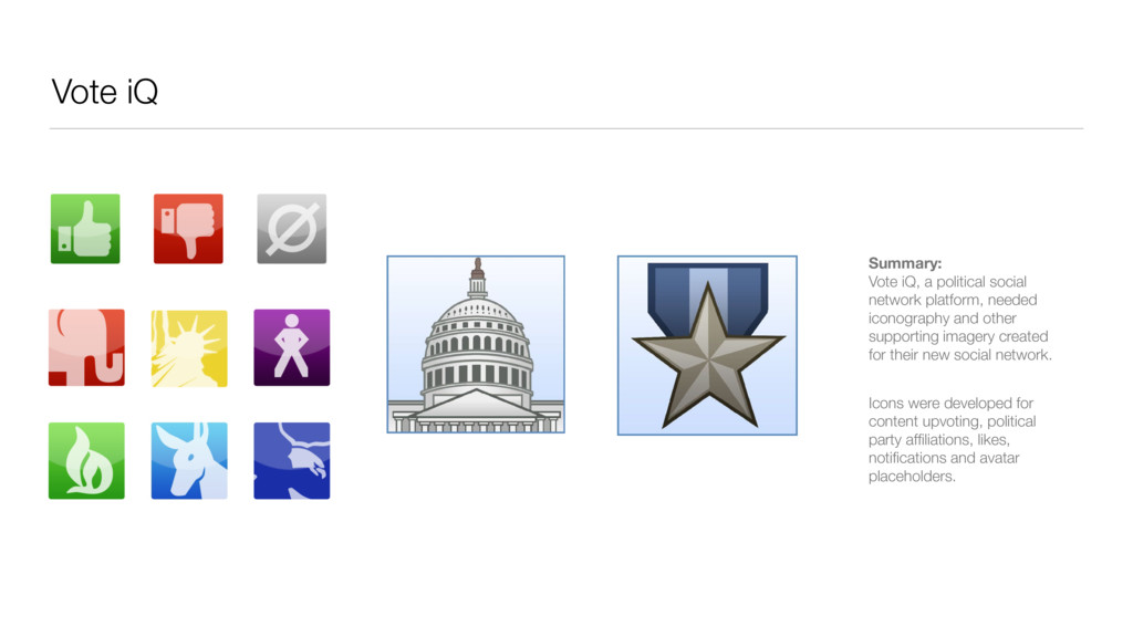 platform, needed iconography and other supporting imagery created for their new social network. Icons were developed for content upvoting, political party affiliations, likes, notifications and avatar placeholders.