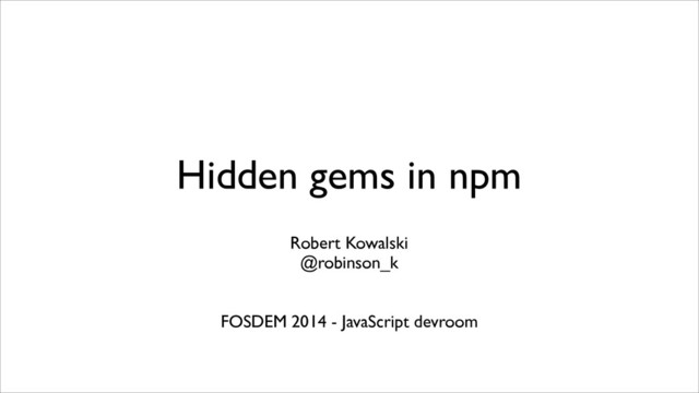 Node has one of the best package managers around: npm. With more than 50k packages the npm registry has an average growth of 116 packages/day and every month a lot of features are added to npm itself. In my talk I will show some brand new features and hidden gems to make you a more productive npm user.