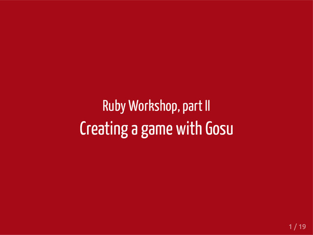 o jogo (m k d i r ) Crie um arquivo g a m e . r b r e q u i r e ' g o s u ' c l a s s G a m e < G o s u : : W i n d o w d e f i n i t i a l i z e s u p e r ( 6 0 0 , 6 0 0 , f a l s e ) e n d e n d g a m e = G a m e . n e w g a m e . s h o w 3 / 19