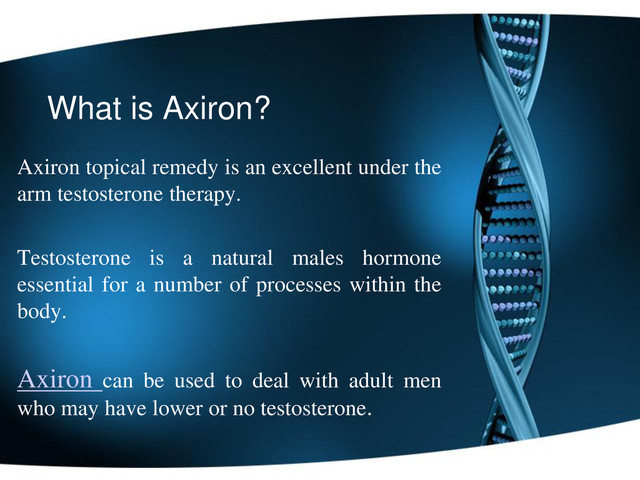 the arm testosterone therapy. Testosterone is a natural males hormone essential for a number of processes within the body. Axiron can be used to deal with adult men who may have lower or no testosterone.