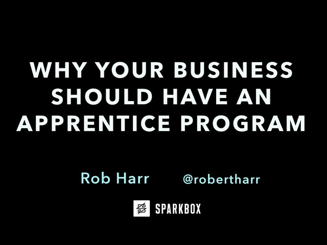 Rob Harr WHY YOUR BUSINESS SHOULD HAVE AN APPRENTICE PROGRAM