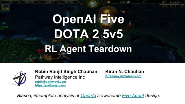 Intelligence Inc Thank you! Robin Ranjit Singh Chauhan: The rest [email protected] https://github.com/pathway https://ca.linkedin.com/in/robinc https://pathway.com/aiml Kiran Chauhan: Memes and Dota info [email protected] Aug 5: Benchmark match • Playing vs 99.95th-percentile Dota players 12:30pm Pacific Time on August 5th in SF • Streaming at https://www.twitch.tv/openai Aug 20–25: Dota 2 International • Rogers Arena in Vancouver, Canada