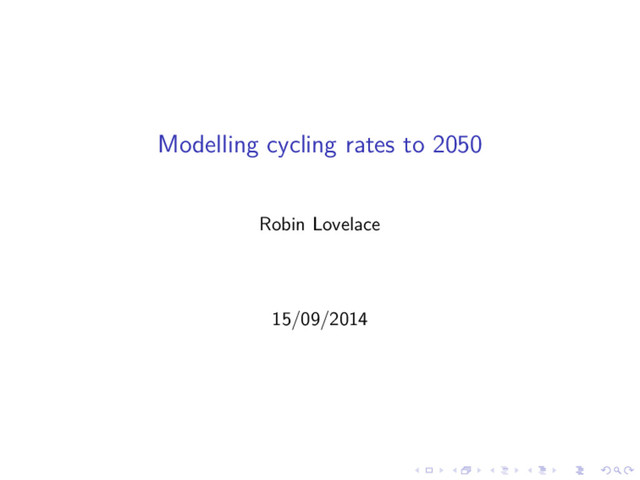 -> stage level analysis Short-term GBC parliamentary debate, monetary valuation is needed Increased physical activity due to cycling will be an output Emissions savings: relatively straightforward Estimating congestion savings still a challenge Mid-term aim: use scenarios to update 2011 work: Energy implications of modal shift to cycling to 2050 in the UK