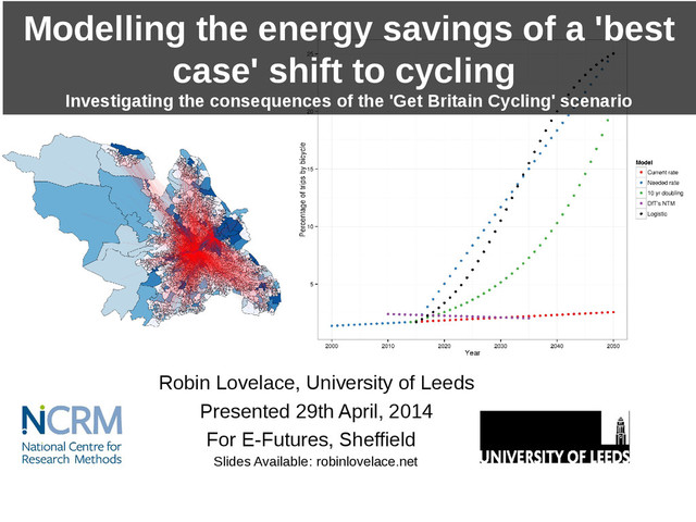 cycling Investigating the consequences of the 'Get Britain Cycling' scenario Robin Lovelace, University of Leeds Presented 29th April, 2014 For E-Futures, Sheffield Slides Available: robinlovelace.net