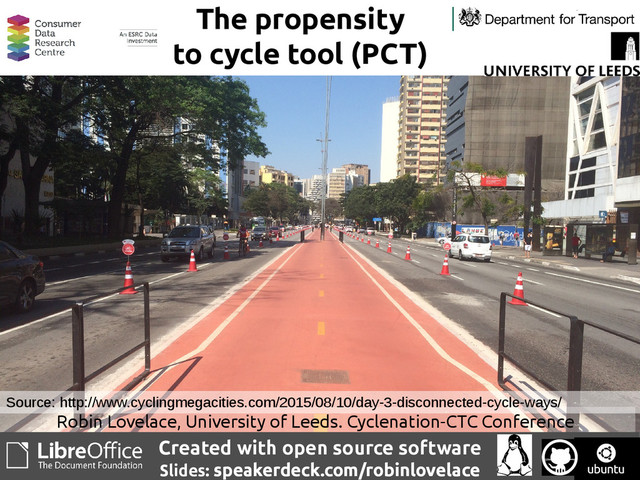 Leeds. Cyclenation-CTC Conference Created with open source software Slides: speakerdeck.com/robinlovelace Source: http://www.cyclingmegacities.com/2015/08/10/day-3-disconnected-cycle-ways/