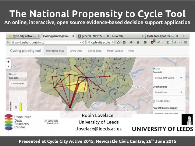 source evidence-based decision support application Presented at Cycle City Active 2015, Newcastle Civic Centre, 26th June 2015 Robin Lovelace, University of Leeds [email protected]