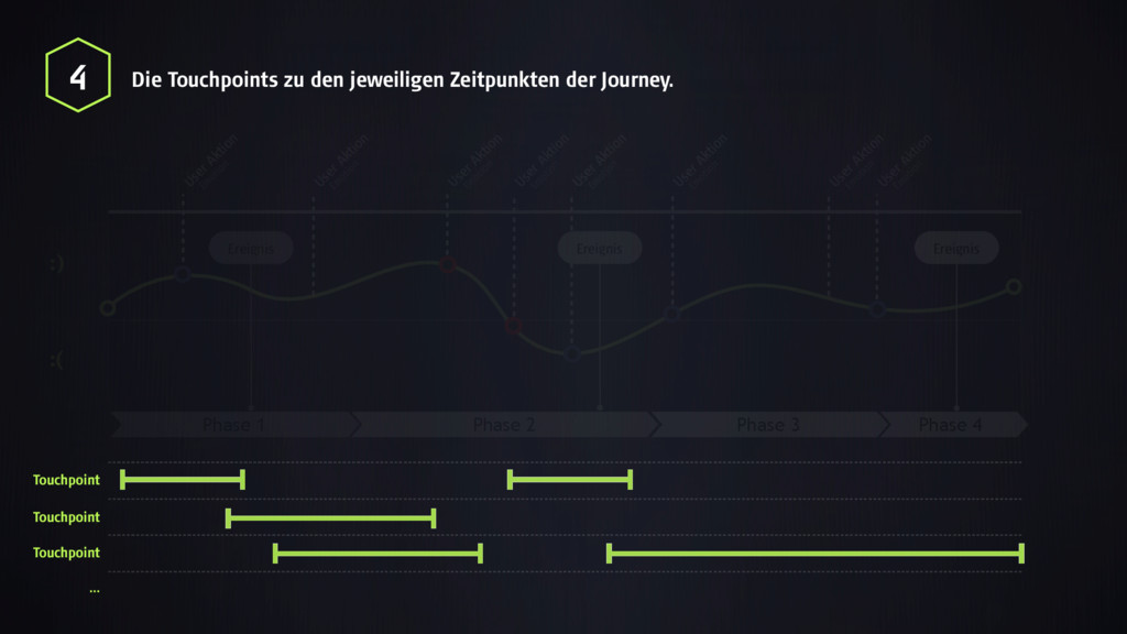 :) :( Ereignis Ereignis Phase 1 User Aktion User Aktion User Aktion User Aktion User Aktion User Aktion User Aktion User Aktion Em otion Em otion Em otion Em otion Em otion Em otion Em otion Em otion POS Handy Laptop … Phase 4 Ereignis 4 Die Touchpoints zu den jeweiligen Zeitpunkten der Journey. Touchpoint Touchpoint Touchpoint …