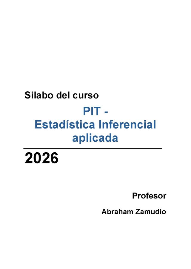 Consultor requieren de estas competencias de manera fundamental. No solo estarás aprendiendo estadística; estarás invirtiendo en tu empleabilidad. Este curso está meticulosamente diseñado para romper la barrera del miedo. Partimos de tu conocimiento en estadística descriptiva y te guiamos, paso a paso, a través de una jornada de descubrimiento. No se trata de memorizar fórmulas, sino de desarrollar una intuición estadística potenciada por la capacidad computacional de Python. Al final de estas 18 horas, no solo tendrás un certificado. Tendrás un portafolio de proyectos aplicados, la confianza para abordar problemas complejos con un método científico y una habilidad que te distinguirá en cualquier campo al que decidas dedicarte. 3.​ Objetivo general del curso Introducir a los estudiantes a los conceptos fundamentales de la estadística inferencial, combinando bases teóricas con aplicaciones prácticas utilizando Python. El curso busca desarrollar habilidades para diseñar y analizar experimentos, interpretar datos y tomar decisiones informadas en contextos académicos y profesionales. 4.​ Objetivos específicos del curso •​ Comprender los conceptos básicos de los componentes teóricos de la estadística inferencial •​ Aprender a utilizar los principales conceptos de la estadística inferencial •​ Conocer y aplicar técnicas inferenciales a datos reales •​ Realizar proyectos prácticos con datos reales para aplicar los conocimientos adquiridos. 5.​ Resultados de aprendizaje Al finalizar el curso el alumno: •​ Aplica de manera útil las características que tiene el lenguaje de programación python a problemas reales que requieren un análisis inferencial •​ Sabe cómo explotar las características inherentes a las pruebas inferenciales •​ Conoce y es capaz de implementar algoritmos para resolver problemas prácticos. •​ Identifica, selecciona y combina los algoritmos enseñados en el curso, y los aplica en casos de interés para su carrera. 6.​ Metodología El desarrollo de las sesiones se efectuará mediante exposiciones del profesor, las mismas que se manejan en forma dinámica e interactiva con los alumnos, relacionando cada uno de los conceptos teóricos con casos prácticos. Abraham Zamudio