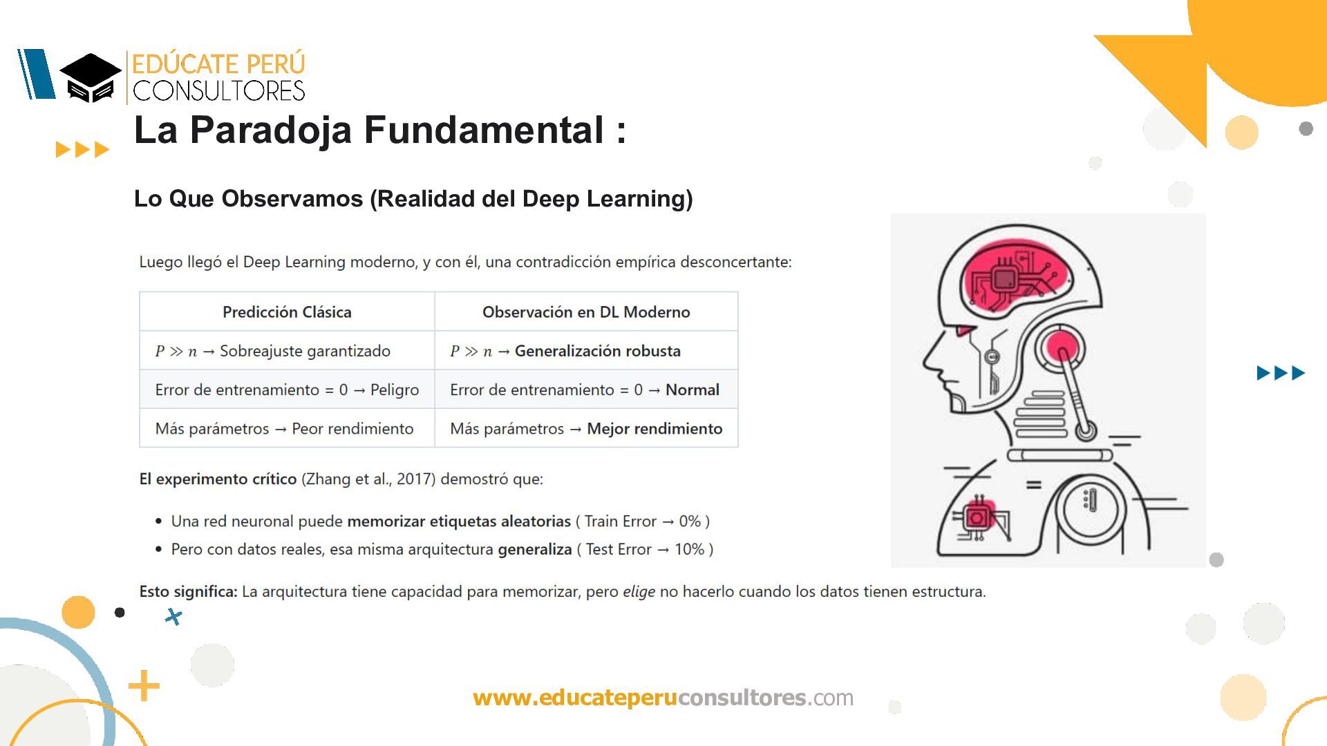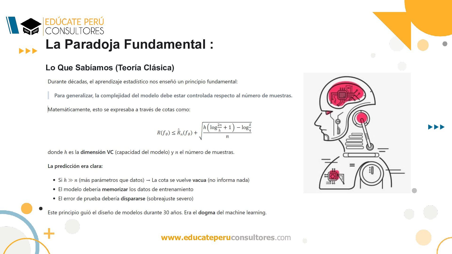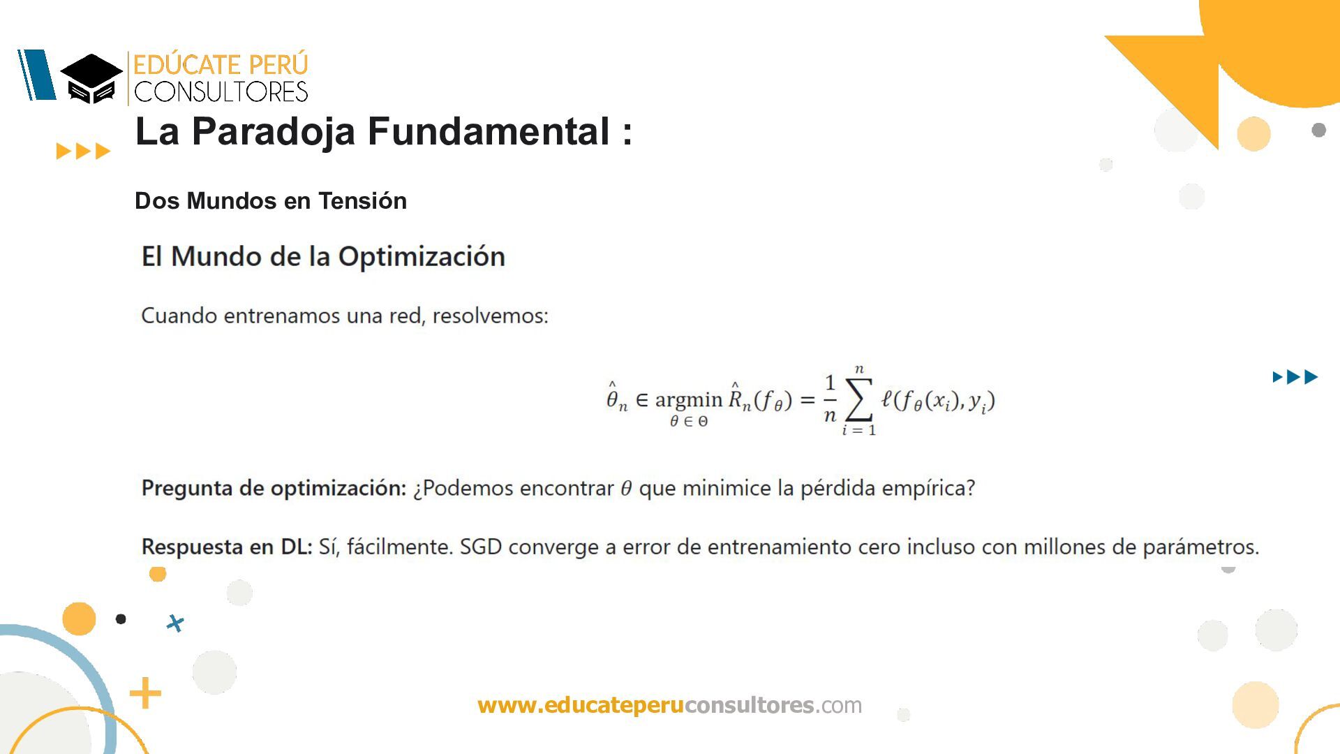 del algoritmo de optimización (por ejemplo, descenso de gradiente estocástico) inducen un sesgo implícito (implicit bias) que selecciona, entre el conjunto de minimizadores globales, aquellas soluciones con buena capacidad de generalización? ¿Qué mecanismo induce una regularización implícita que restringe efectivamente el espacio de hipótesis, favoreciendo soluciones de baja complejidad (en algún sentido funcional o geométrico), a pesar de la ausencia de regularización explícita? Dado que múltiples hipótesis interpolan perfectamente los datos, ¿por qué el algoritmo de optimización (e.g., SGD) selecciona soluciones cuya complejidad efectiva —medida en términos de normas funcionales, márgenes o subconjuntos efectivos induce cotas no vacuas de generalización (por ejemplo, a través de una baja complejidad de Rademacher efectiva)?