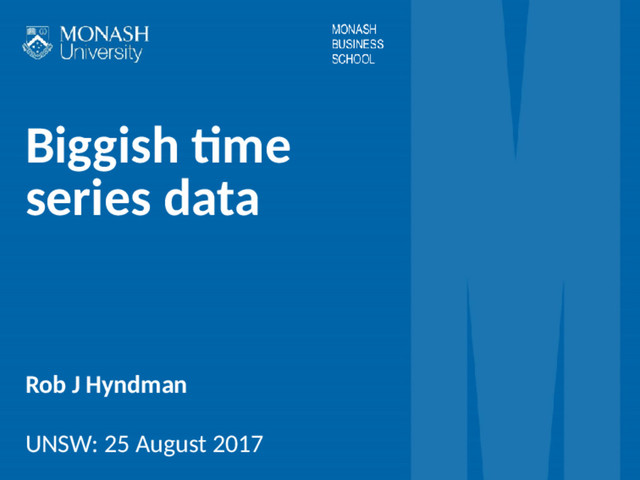 for heterogeneity ARMA errors for short-term dynamics Trend (possibly damped) Seasonal (including mul ple and non-integer periods) Handles non-integer seasonality, regular mul ple seasonal periods, but not public holidays. En rely automated Predic on intervals o en too wide Very slow on long series Biggish me series data Automa cally forecas ng me series 37
