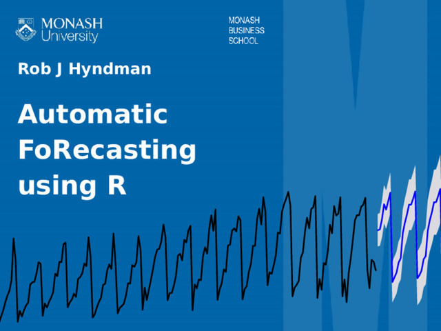 (None) (Additive) (Multiplicative) N (None) N,N N,A N,M A (Additive) A,N A,A A,M Ad (Additive damped) Ad,N Ad,A Ad,M N,N: Simple exponential smoothing A,N: Holt’s linear method Ad,N: Additive damped trend method A,A: Additive Holt-Winters’ method A,M: Multiplicative Holt-Winters’ method Automatic FoRecasting using R Exponential smoothing 8