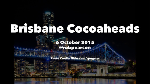 Brisbane Cocoaheads 6 October 2015 @robpearson Photo Credit: flickr.com/spugster